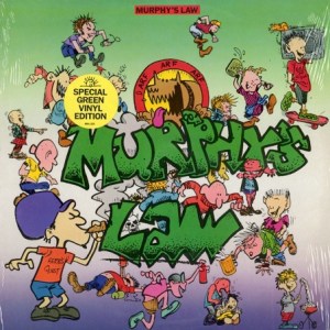 1986 was a pretty big year for Rock Hotel Records, a NY-based indie label who loved mixing their punk with their metal. I mean, just off the top of my head (which this early in the morning is fairly admirable, I must say), they released the debuts from Cro-Mags, Wargasm and Murphy’s Law. Now, the former two definitely had more of a metallic bent musically as well as a dark, somewhat intimidating physical presence whereas Murphy’s Law just came off as a bunch of beer-swilling, weed-smoking, politically incorrect louts (all of which was likely true). But they, I’ll never fault anyone for having a great time whilst rocking, and Murphy’s Law definitely embraced both. I mean, the cartoony jacket alone pretty much says it all, including the custom sticker that notes this is the original green vinyl pressing, as well as the back cover shot featuring Jimmy Gestapo in a Judge Dread T-shirt. Judge Dread ruled in the mid 80’s. Literally. Well, literally if you were a comics fan.